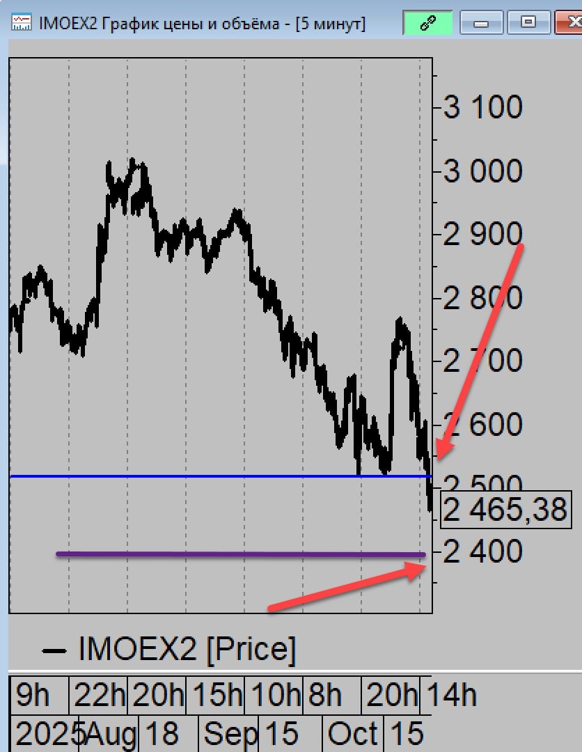 Так вот если мы вдруг увидим уровень 2400 на этой неделе. Этот условный уровень контроля риска нужно будет переместить на него. Т.е. если сократили на 2520, то после прокола 2400 и ухода обратно выше или если рынок начнёт разворачиваться у 2400 можно увеличивать позиции со стопами чуть ниже 2400 и далее делать тоже что на 2520....