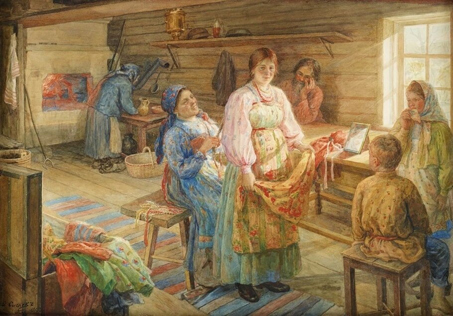 Как и в нашу пору, свадьба на Руси считалась одним из самых значимых и торжественных событий. Это был важный день, вызывающий бурю эмоций у всех участников процесса. К подготовке как будущая невеста, так и её избранник относились с большим уважением и серьёзностью. Для каждой русской девушки подготовка к свадьбе начиналась с малых лет - с собирания приданого. Приданое - это имущество, которое невеста приносила в дом будущего мужа. В его состав входили вещи разнообразные и очень нужные: одежда, постельное бельё, полотенца, скатерти, ковры, посуда, украшения и иногда даже мебель. Смотришь на девичью подготовку, и диву даёшься - всё это будущая невеста готовила собственными руками. Ткань для рубахи или покрывала она пряла самостоятельно, вышивание было сродни искусству, и каждая вещь могла рассказать историю или подчеркнуть мастерство рукодельницы. Красота и богатство приданного говорили не только о достатке семьи, но и о трудолюбии самой девушки. Приданое торжественно выставлялось напока