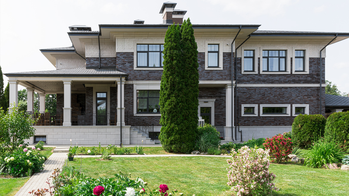Во внешнем оформлении дома разработан уникальный комплект декоративных элементов, включающий фриз с символическими образами членов семьи. Выбор материалов, использованных в отделке фасадов, продиктован их максимальной надежностью, не требующих ухода и регулярных косметических подновлений.