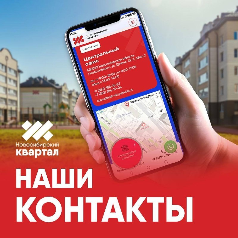 Уважаемые клиенты, сохраните наши контактные данные! В нашей компании три офиса продаж: Центральный офис г. Новосибирск, ул. Дачная, 42/1, офис 2. С понедельника по четверг работаем с 9:00 до 18:00, в пятницу с 9:00 до 17:00. ☎️ Тел. +7(383)388-76-87, +7(383)286-19-04 р.п. Краснообск, 2-й микрорайон, 232, офис 15. С понедельника по четверг работаем с 9:00 до 18:00, в пятницу с 9:00 до 17:00, в субботу с 10:00 до 17:00. ☎️ Тел. +7(383)209-10-13, +7(383)291-19-04 п. Элитный, ул. Фламинго,11. С понедельника по четверг работаем с 9:00 до 18:00, в пятницу с 9:00 до 17:00, в субботу с 10:00 до 17:00. ☎️ Тел. +7(383)209-10-13, +7(383)291-19-04 В любое время можно зайти на наш сайт