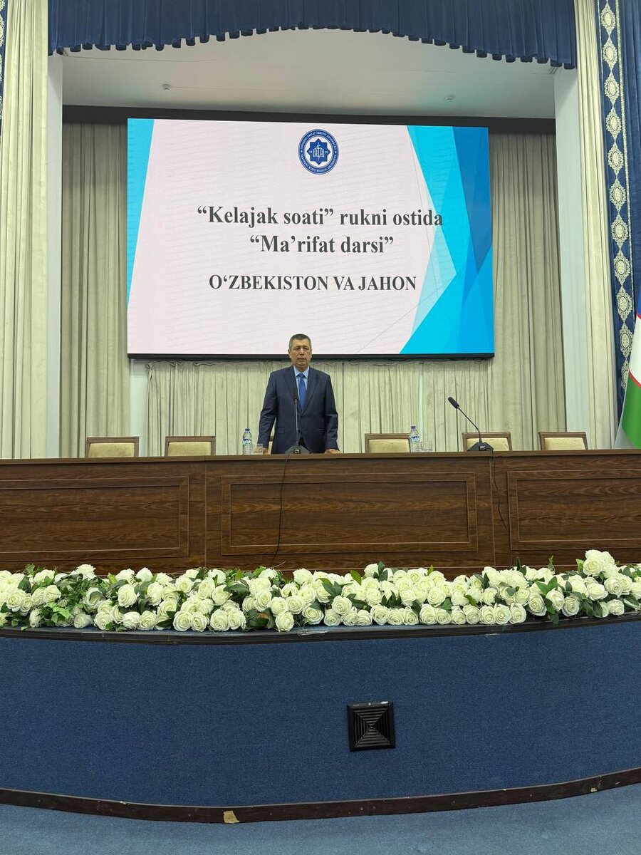 🔺2025-yil 27-oktabr kuni Toshkent davlat tibbiyot universitetining Bosh kampusi, Pediatriya kampusi va Stomatologiya kampusi hududlarida “Kelajak soati” rukni ostida “Ma’rifat darsi” o‘tkazildi. 🔺“O‘zbekiston va jahon” mavzusidagi “Kelajak soati” rukni ostidagi “Ma’rifat darsi” davomida talabalar O‘zbekistonning jahon hamjamiyatidagi o‘rni, tashqi siyosatining asosiy yo‘nalishlari va xalqaro maydondagi nufuzini yanada chuqur anglab oldilar. 🔺Dars jarayonida O‘zbekistonning xalqaro tashkilotlar bilan hamkorligi, tinchlik, taraqqiyot va barqarorlikni ta’minlash yo‘lidagi tashabbuslari, shuningdek, mamlakatning “Inson – jamiyat – davlat” tamoyiliga asoslangan islohotlari haqida keng ma’lumot berildi. 🔺Talabalarda milliy g‘urur, Vatanga sadoqat va xalqaro jarayonlarda faol ishtirok etishga intilish ruhiyati shakllandi. Mazkur ma’rifat darsi yoshlarning dunyoqarashini kengaytirish, ularni global fikrlaydigan, mas’uliyatli va ongli fuqarolar sifatida tarbiyalashga xizmat qildi. 🔺“Kelaj