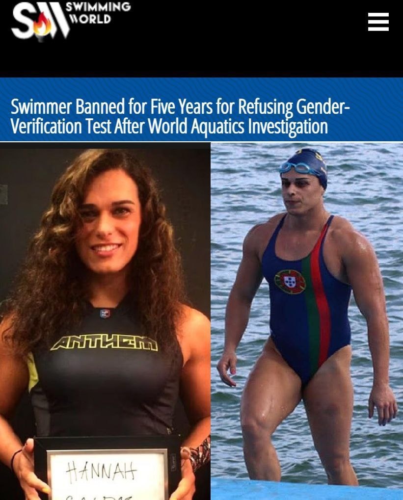 Международная федерация любительского плавания (World Aquatics) дисквалифицировала на 5 лет с лишением всех наград очаровательную пловчиху Ханну Кальдас за отказ пройти ДНК-тест на установление пола. Сама девушка считает эту процедуру излишней и где-то даже оскорбительной. Действительно, cразу же видно , что это обычная ранимая девушка, а не какой -то качок с зашкаливающим уровнем тестестерона...