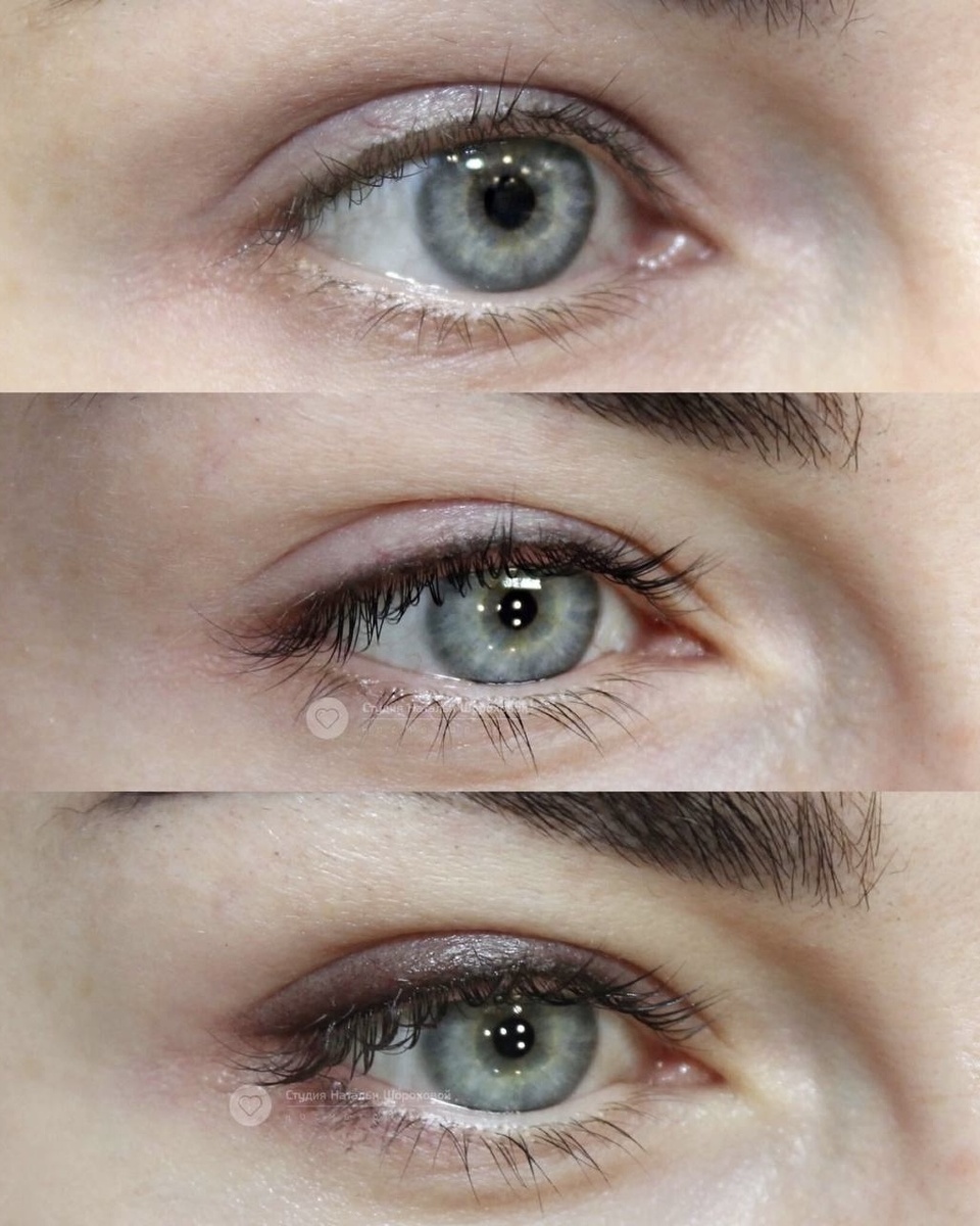 Многие думают, что стрелки в перманентном макияже - это что-то яркое и заметное. Современные техники позволяют добиться такой нежности, что растушеванная стрелка выглядит мягче, чем классическая межресничка. У моей клиентки был запрос на эффект «несмытой туши или карандаша над ресницами». Мы доработали результат: усилили эффект размытия и добавили тень, чтобы глаз выглядел больше, а взгляд был более томным. Посмотрите на разницу между эффектом теневой стрелки слева, где граница размыта и карандашной справа, где граница остается мягкой, но более очерченной. На одном глазу уже заиграла мягкая дымка, а другой хранит строгую линию- и в этой разнице видно, как взгляд меняет настроение. Растушевка создает эффект легкой дымки, добавляет глубины взгляду и мягко подчеркивает ресницы. Макияж словно есть, но при этом без излишней четкости и грубых акцентов.