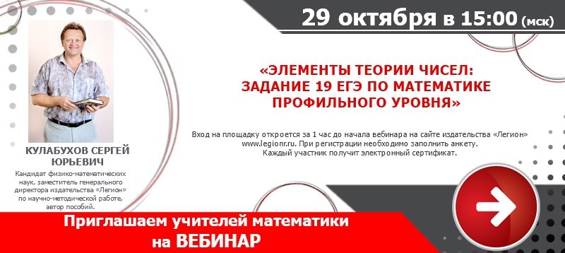 Вебинар "Элементы теории чисел: задание 19 ЕГЭ по математике профильного уровня"