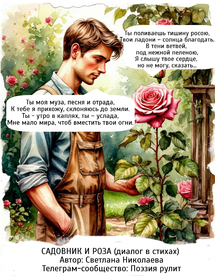 Недавно в Телеграм - сообществе Поэзия рулит прошла игра - Диалоги 1 - о любви Авторы писали в стихах короткие реплики разных героев, а мы оформляли с помощью ИИ в картинки.