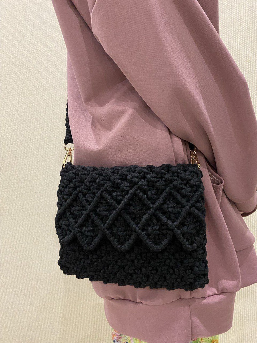 Сплела сумочку чуть больше чем мы плетём на мастер-классах, для больших телефонов)) как вам