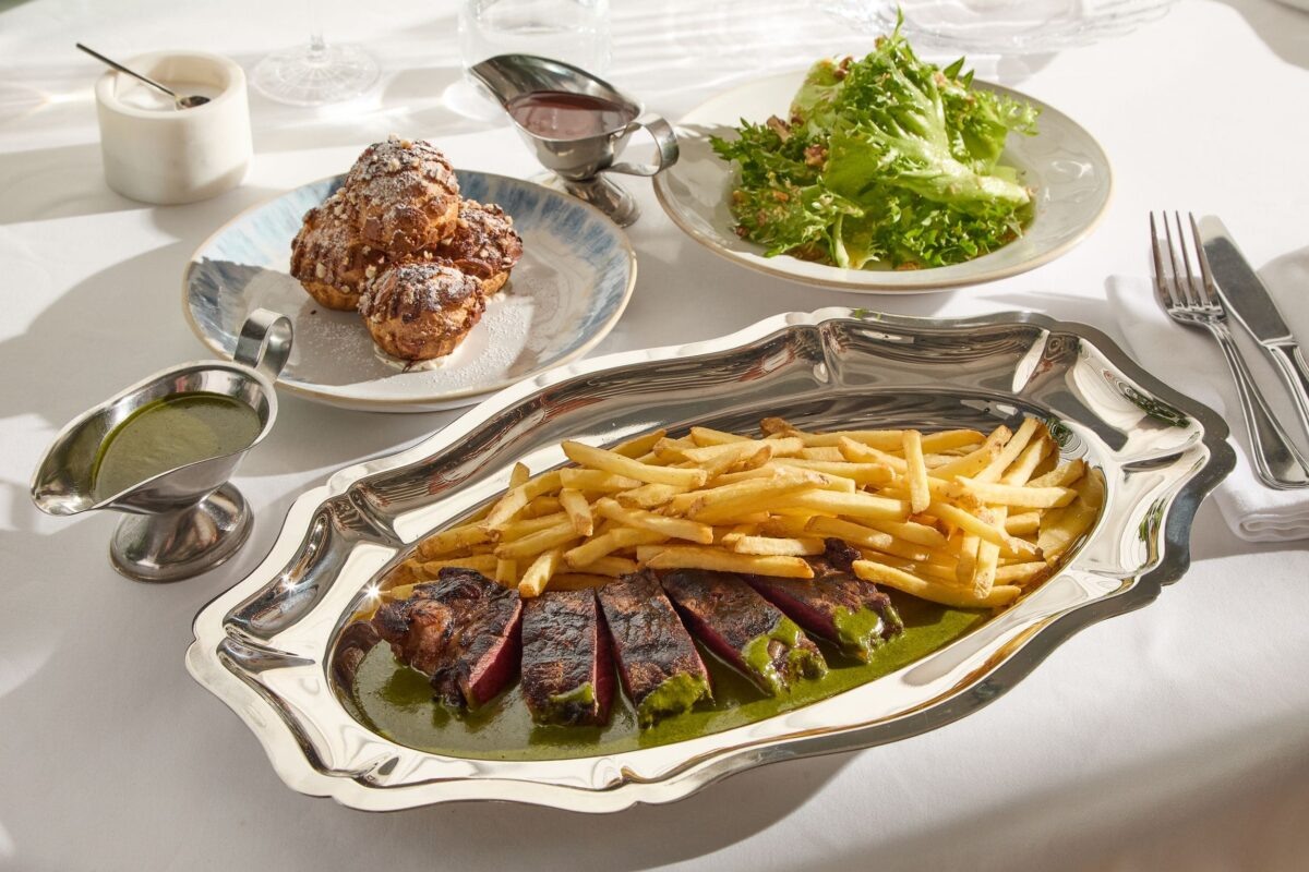 27 октября в ресторане «Рыбы нет», совместном проекте от Novikov Group и агрохолдинга «Мираторг» в отеле St. Regis на Никольской, запускают сет со стейком фри и секретным соусом, зеленым салатом и профитролями с шоколадным соусом (7000 руб.). Бренд-шеф Камель Бенмамар создал его, вдохновившись рестораном Le Relais De L’Entrecôte в Париже, где с 1959 года подают три аналогичных блюда. При заказе сета гостям дарят баночку секретного соуса с собой, чтобы даже дома можно было воссоздать знакомые вкусы и атмосферу легендарного ресторана. Le Relais De L’Entrecôte работает в Париже больше 60 лет. Год за годом там подают всего 3 блюда, ради которых местные жители и туристы приезжают специально и готовы стоять многокилометровые очереди. Не последнюю роль играет атмосфера: теплая, уютная и в хорошем смысле слова простая. Официанты поддерживают ее с помощью униформы: черные минималистичные наряды и белые фартуки. Необычная концепция сделала ресторан гастрономическим и культурным феноменом, а брен