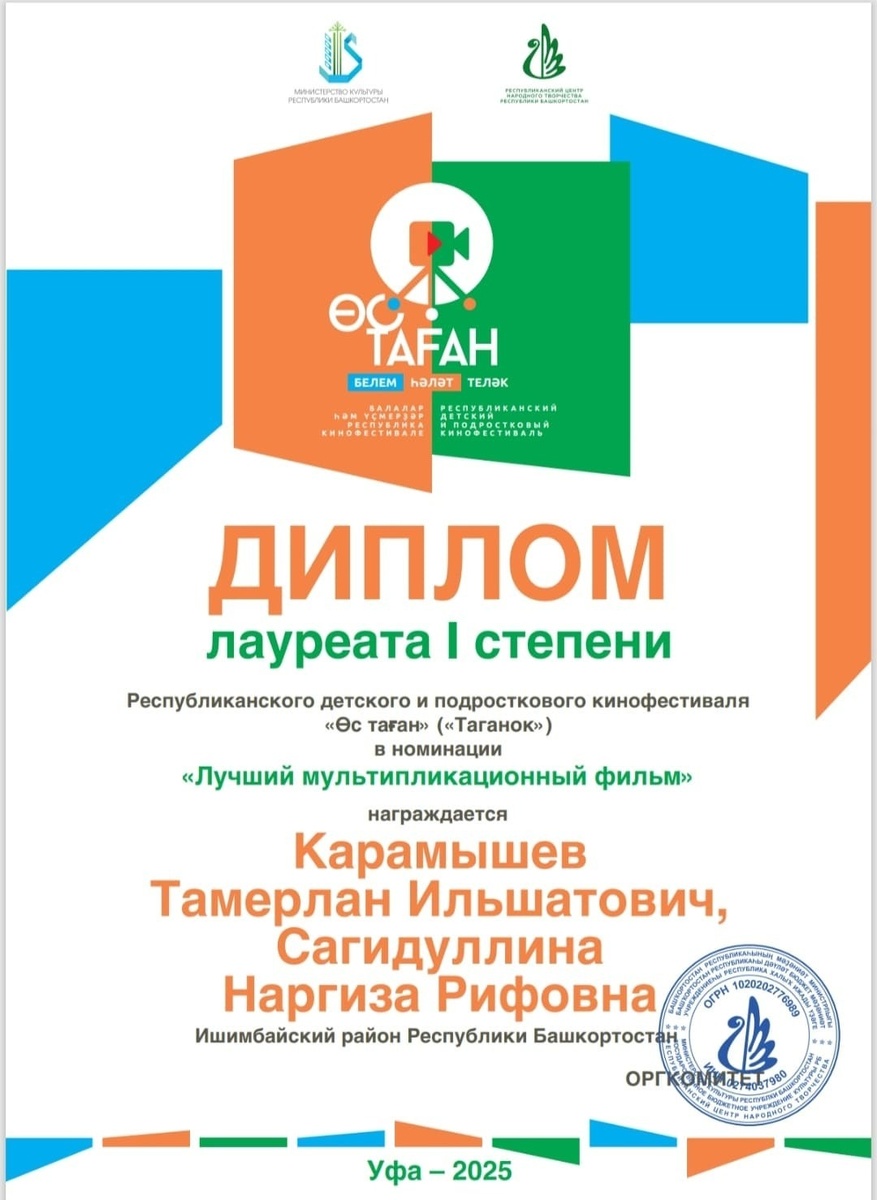 Республиканский конкурс, собрал 30 творческих работ от юных жителей региона в возрасте от 7 до 18 лет. Фестиваль проходил в рамках окружного проекта «Театральное Приволжье» и был посвящён 80-летию Великой Победы, Году защитника Отечества и Году поддержки участников СВО и членов их семей. Особенный успех ждал учеников школы села Макарово Ишимбайского района. Тамерлан Карамышев и Наргиза Сагидуллина создали патриотический мультфильм о снайпере Великой Отечественной войны Ахате Ахметьянове, который победил в номинации «Лучший мультипликационный фильм»! Работа была сделана во время мастер-класса студии «Ишимбайфильм» в Макарово. Юные авторы в своих работах раскрыли три важные темы: патриотизм, военную историю и сохранение памяти о подвигах. Здорово, что современные дети глубоко чувствуют и творчески переосмысливают нашу историю! Ранее «Восход» писал, что юные гитаристы из Ишимбая показали класс на «Золотом Сапсане».