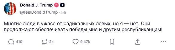 Многие люди в ужасе от радикальных левых, но я — нет. Они продолжают обеспечивать победы мне и другим республиканцам!
