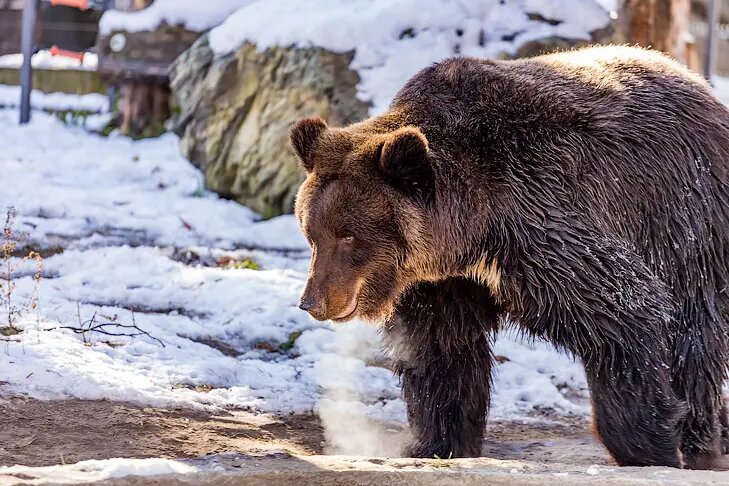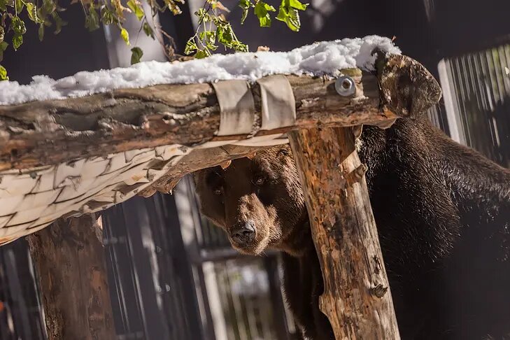 «Им приносят солому, Леха уже сам берёт себе столько, сколько ему нужно. Сам делает настил. Зимой их, конечно, не тревожат, но не оставляют совсем без наблюдения. Потому что Леха может проснуться на какое-то время, может даже выйти, поесть снега, а затем обратно зайти спать», — уточняет специалист.