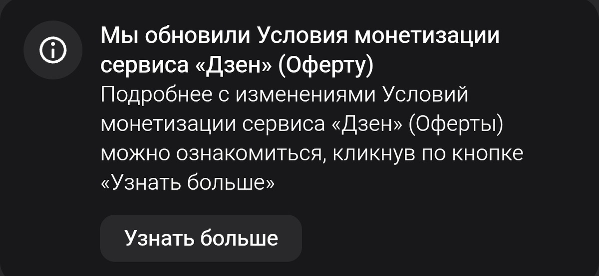 Всё бы ничего, но это всё ведь мои домыслы. Нет официальной позиции платформы, почему она меняет тот или иной пункт оферты. То есть «Дзен» во всех красках и с разных ракурсов описывает преимущества платной подписки, донатов и «Премьера», но не комментирует свои действия по оферте. Просто ставит перед фактом.