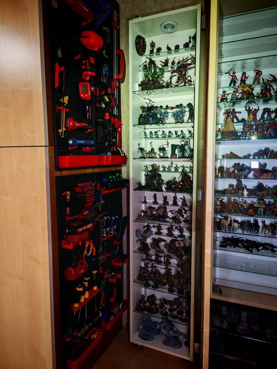 Получился, обновился, симпатичный угол. Солдатики и инструмент-под-рукой (не модельный). А полки рядом в процессе формирования.