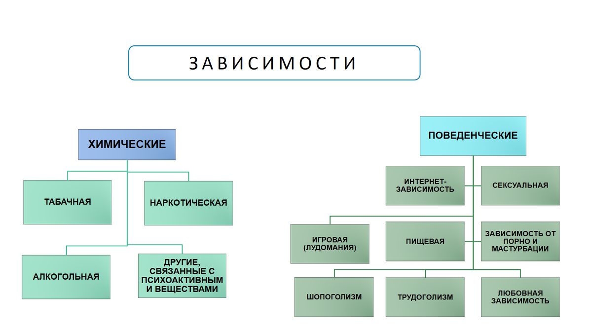 Все зависимости делятся на два типа: поведенческие и химические.