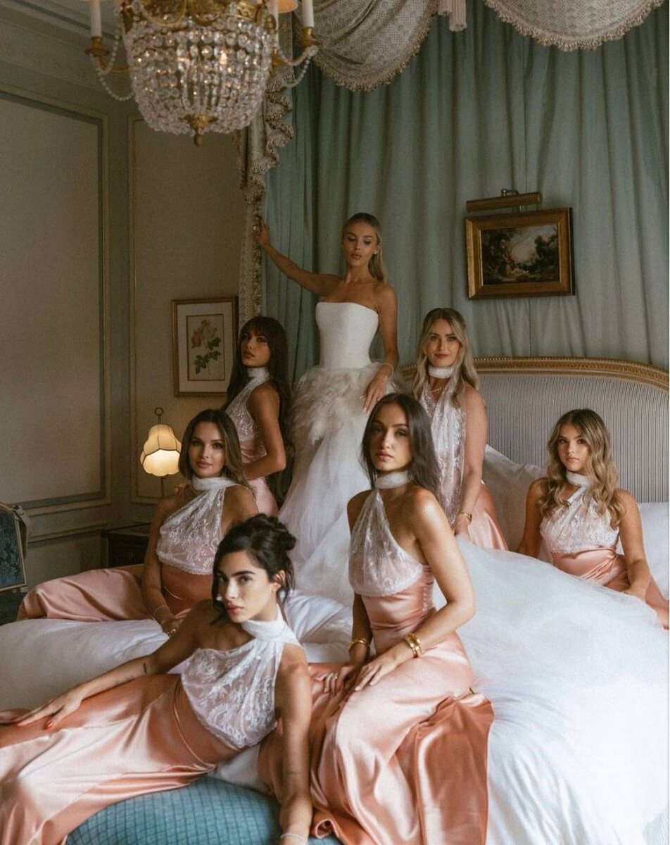 Ваши подруги — не просто свита, а важнейшая часть свадебной истории. Их образы должны подчеркивать вашу красоту, сохраняя при этом их индивидуальность. Как найти идеальный баланс между единством стиля и комфортом каждой? Забудьте о стереотипах — современный подход куда интереснее. Стратегия выбора: От общей концепции к деталям Главная ошибка — начинать с фасона. Правильный путь лежит через три ключевых пункта. 1. Цвет как основа гармонии. · Акцентный оттенок: Выберите один цвет из вашей свадебной палитры (например, пыльная роза, хаки, лаванда, темный изумруд). Это создаст мгновенное визуальное единство. · Монохром: Подберите платья разных оттенков одного цвета. Смотрится дорого и сложно, позволяя учесть разный цветотип внешности подруг. · Пастельный микс: Для летней и романтичной свадьбы идеален мягкий ансамбль из нескольких согласованных пастельных тонов (мятный, персиковый, пудрово-голубой). 2. Единство через разные фасоны. Универсальное решение, которое решает все пробле