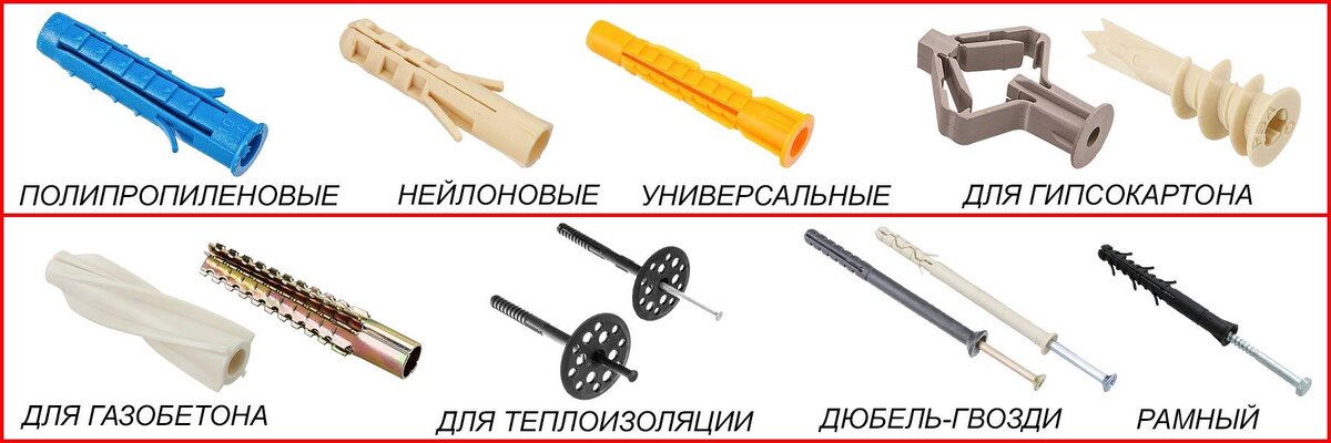 Дюбель — это крепежный элемент, используемый для фиксации различных конструкций (например, мебели, полок, картин, осветительных приборов и др.) к стенам, потолкам и другим поверхностям. Существует несколько видов дюбелей, каждый из которых предназначен для определенных материалов и условий эксплуатации: Это наиболее распространенный вид дюбелей. Принцип их действия основан на расширении внутренней части дюбеля при закручивании шурупа, что обеспечивает надежное крепление в стене. Такие дюбели подходят для большинства строительных материалов, включая бетон, кирпич и камень. Используются для крепления тяжелых предметов в пористых или рыхлых материалах. Представляют собой специальный состав, который вводится в заранее просверленное отверстие и затвердевает, образуя прочное соединение. Применяются преимущественно для бетона и кирпича. Установка осуществляется путем забивания дюбеля молотком, после чего в него вворачивается винт или саморез. Специальные пластиковые фиксаторы, предназнач