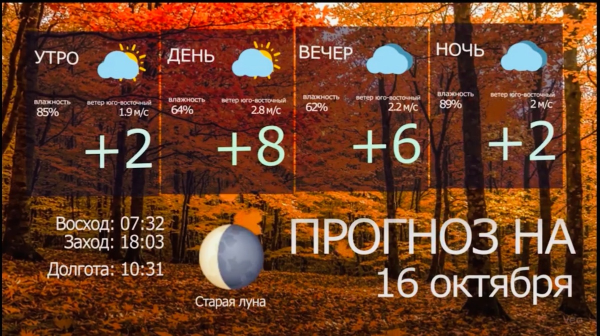 По данным Башгидромета, 16 октября на территории республики ожидается облачная погода. Небольшие дожди, местами до умеренных. Ветер юго-западный, западный 5-10 м/с. Температура воздуха ночью 0,+5°, днем +7,+12°. На отдельных участках автодорог ухудшение видимости в тумане до 500м и менее. Источник https://uchaly102.ru/?p=105569