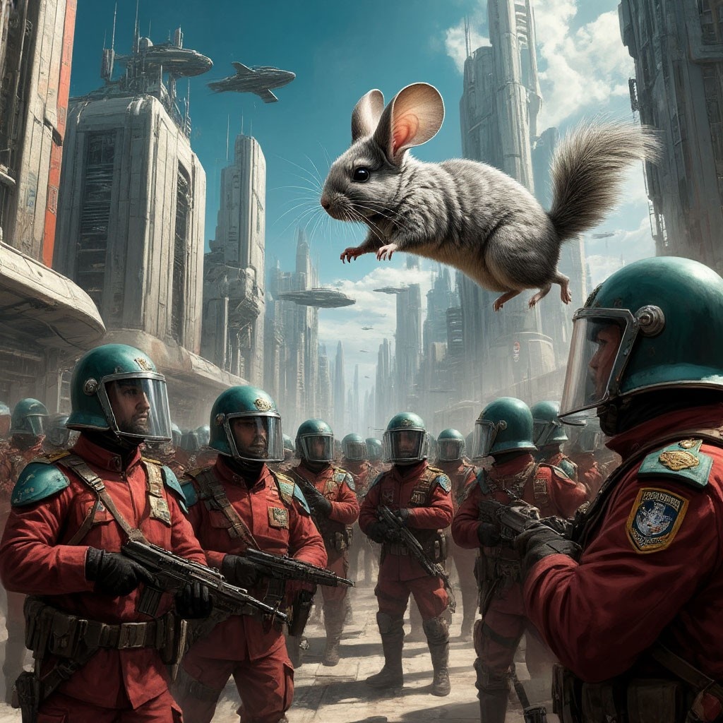 В комнате был ужасный беспорядок, почему-то даже одежда была вытащена из шкафов и валялась на диванах, столах и на полу. Компьютера не было. Лейка рванула в кухню, в которой все шкафы были открыты, все кастрюли стояли на полу, холодильник был также открыт и из него уже натекла лужица воды. Лейка вихрем понеслась в их с Илоной спальню, в спальню профессора, в ванную и даже в чуланчик. В их спальне и в чуланчике весь пол был засыпан орехами, которые Лейке покупал профессор. Она хотела лететь в подвал, но тут послышался голос из громкоговорителя: «Лейка! Ты окружена. Твоё сопротивление может усугубить твоё положение и положение твоих опекунов. Ложись на пол у двери и положи лапы за голову».