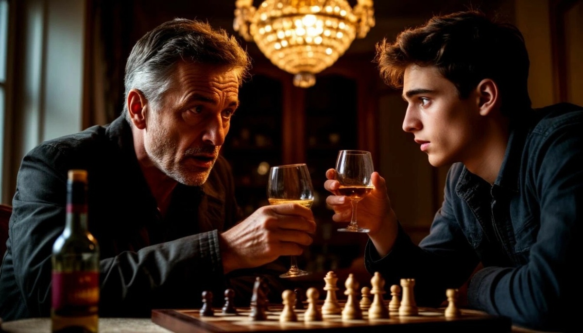 Я, как обычно, проигрывал, потому что после третьей стопки пешка начинает путаться с конём, а король норовит сбежать с доски.
