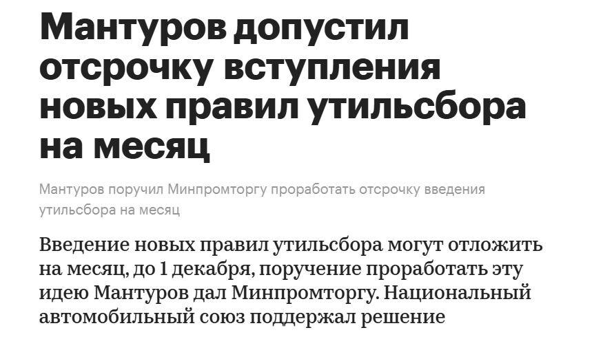 Очень много людей не верили в новый утильсбор, спохватились в последний момент, заказали авто - и не успевают до 1 ноября. Им всем надо дать возможность дотащить свои авто до границы, и тут этот месяц как раз поможет. Касаемо заказов прямо сейчас: из Китая или Кореи за 1,5 месяца... Не, гарантировать не могу. То есть, теоретически успеваем, но лично я бы рисковать не стал. А вот из Японии - на здоровье. Там срок поставки 1 месяц максимум, так что есть еще и 2 недели на подбор.