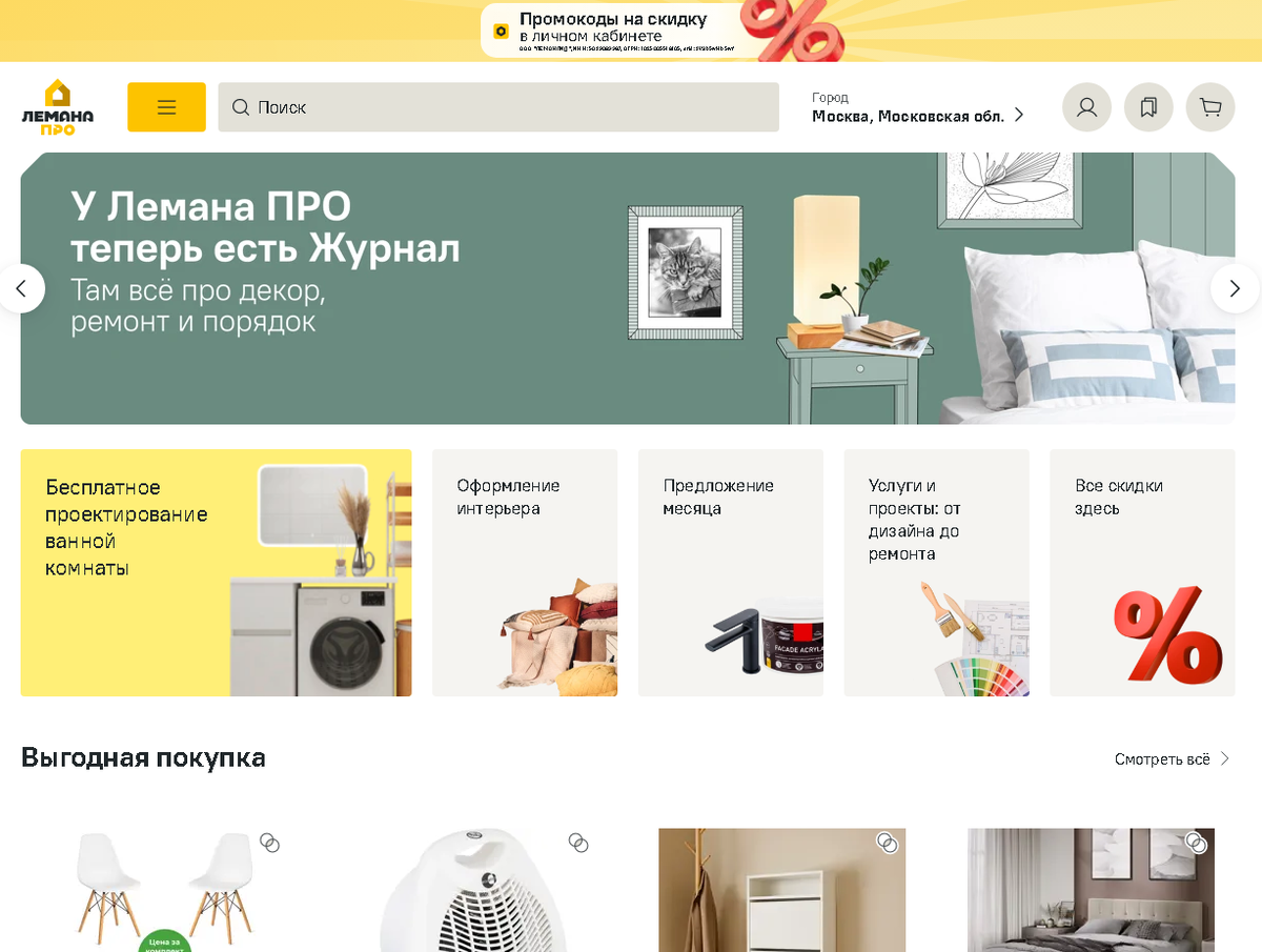 В Лемана ПРО вы сможете сэкономить, участвуя в акциях и используя скидки. Следите за обновлениями, чтобы узнать о последних предложениях, которые помогут купить всё нужное по выгодной цене.