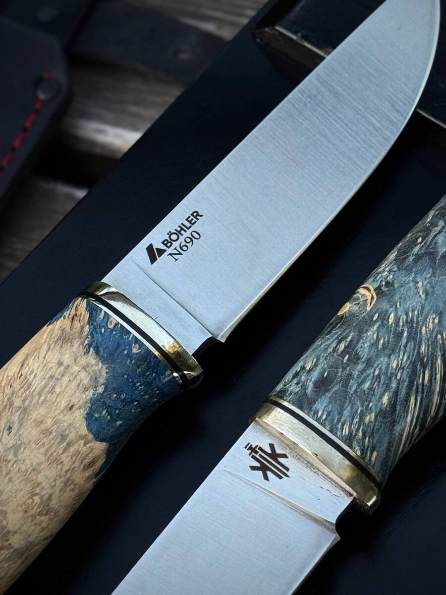 Нож: Охотничий N690 64HRC 1. Сталь N690 BÖHLER 2. Больстер нейзильбер 3. Рукоять стаб. Кап клена 🍁 4. Сборка теплая 5. Темлячный пин 6. Ножны Кожаные Параметры ножей : Общая длина 245мм Длина клинка. 125мм Толщина обуха. 4мм В наличии 10шт ⚪️цена 14.500₽ ЗАКАЗАТЬ В ВАТСАПЕ ЗАКАЗАТЬ В ТЕЛЕГРАММЕ ЭКСКЛЮЗИВНЫЕ НОЖИ 👑 ОТПРАВКА И ОТЗЫВЫ ⚪️+79280609590 В этом посте есть большое видео, которое не загрузилось в Дзен. Откройте оригинал поста в телеграме, чтобы его посмотреть