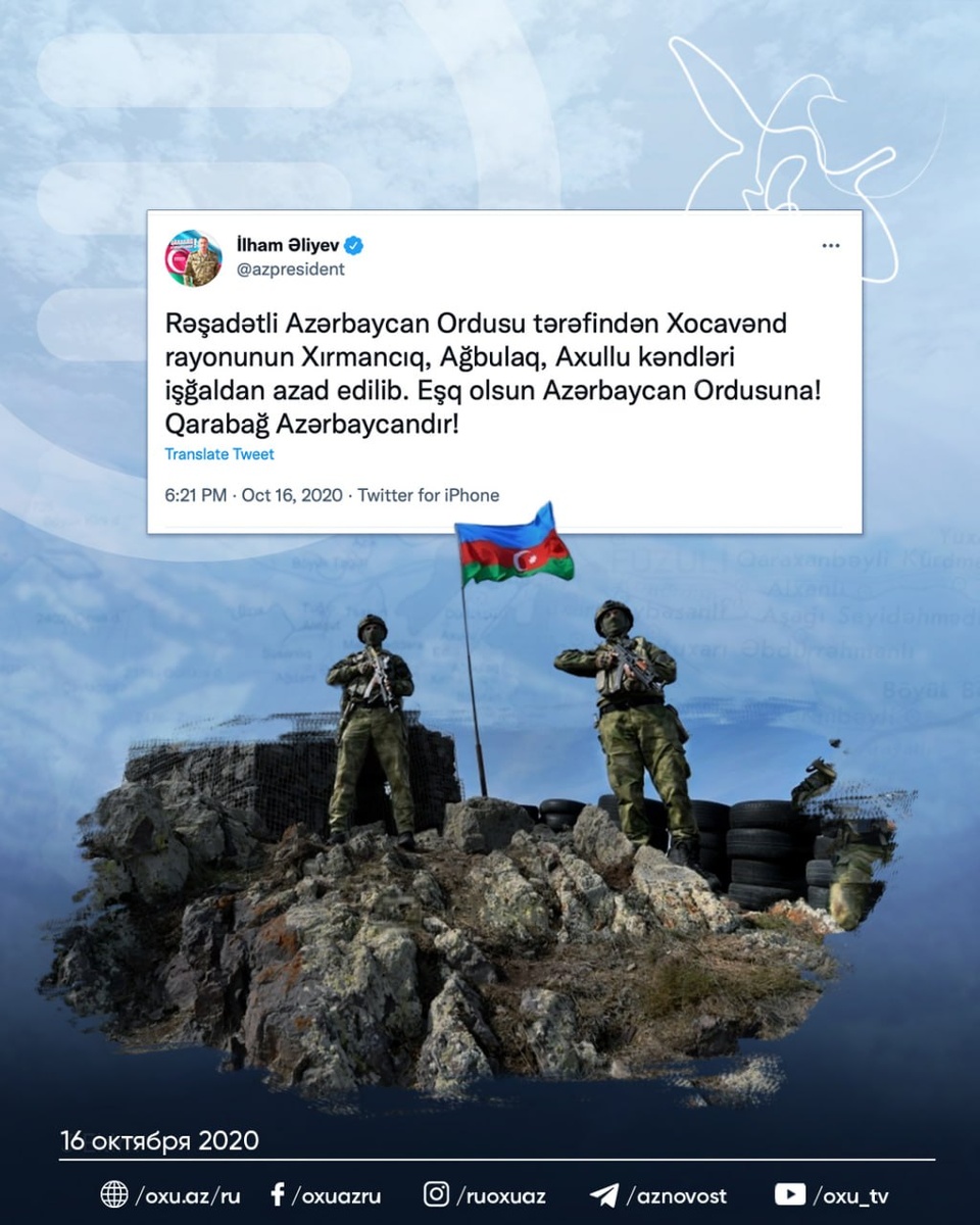🇦🇿 16 октября 2020 года - двадцатый день Отечественной войны, которая привела к освобождению наших земель