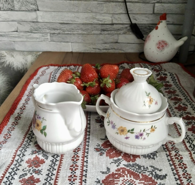 А сервиз ГДР Ильменау был куплен в начале 80-х. Хорошая возможность увидеть его в полной комплектации, потому как недавно я для читательницы в тележке купила точно такой молочник.