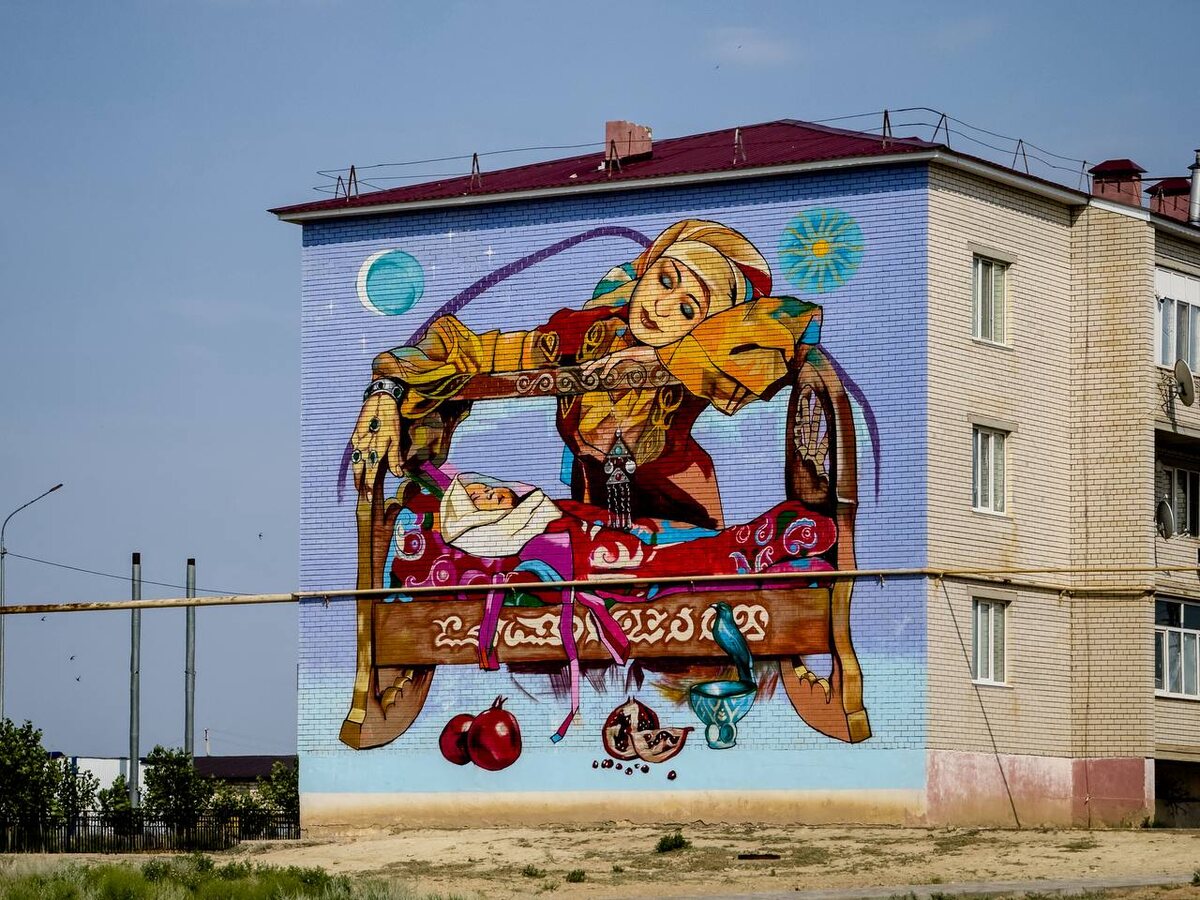 Сердце Индербора: граффити, которое согревает душу Привет, друзья! Продолжаю открывать для вас неожиданные уголки Казахстана. Сегодня мы перенесёмся в посёлок Индерборский, где я нашёл историю, которая тронула меня до глубины души. В центре района, на стене обычной многоэтажки, есть необычный арт-объект — огромное и очень нежное граффити «Мать и дитя». Но самое главное — этот дом специально отдан многодетным семьям. Представляете, как здорово выходить из подъезда и видеть на стене своего дома такой символ любви, заботы и семьи? Несколько фактов, которые делают эту работу особенной: 🇧🇼Идея: Власти хотели не просто украсить фасад, а донести социально важные ценности. Что может быть важнее семьи? 🇧🇼Исполнение: Автор, художник Мейрбек Бахтияр (выпускник престижной Академии искусств им. Жургенова), рассказал, что работал день и ночь, чтобы уложиться в сроки. Один такой мурал команда рисует примерно за три дня! 🇧🇼Технологии: Краски для рисунка специально заказывают из России — они с