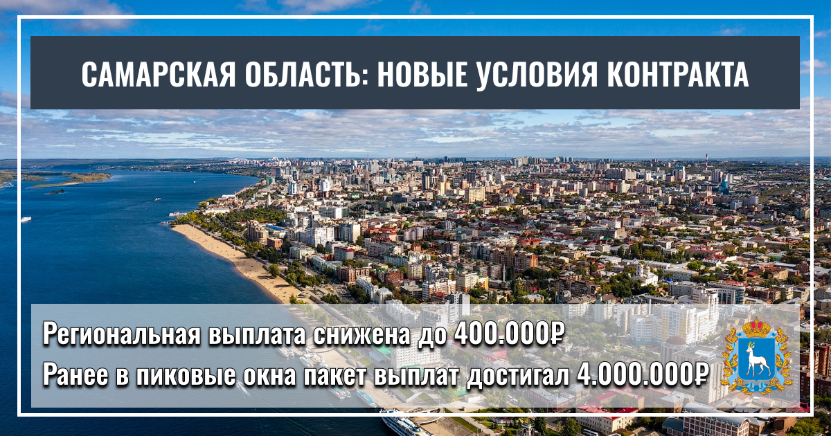 В Самарской области действуют новые условия: Единовременная выплата при заключении контракта теперь составляет 800 000 ₽ суммарно (400 000 ₽ федеральная часть + 400 000 ₽ региональная). Ранее общий пакет достигал 4 000 000 ₽ и считался одним из самых высоких в стране в начале 2025 года. Для офицеров запаса сохраняется повышенная выплата региона — 3 600 000 ₽. — Ульяновская область: 900 000 ₽ (федеральные 400 000 ₽ + региональные 500 000 ₽).