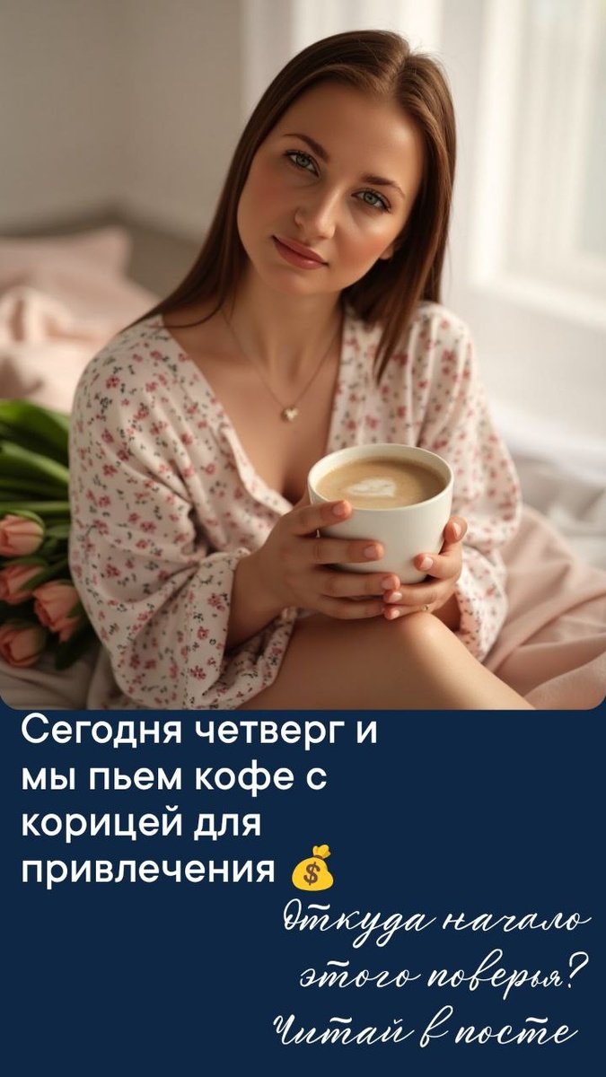 КОФЕ С КОРИЦЕЙ Кофе с корицей пьют в четверг, согласно народным поверьям, для привлечения удачи и финансового благополучия. Эта традиция связана с эзотерическими практиками, где четверг считается днём изобилия, удачи и расширения возможностей Кстати четверг это день недели успеха рожденных 3/12/21/30 числа , для вас будем особенно благоприятной иметь такую привычку Легенда Одна из теорий происхождения традиции — покровительство Юпитера — планеты изобилия, удачи и великодушия. Четверг, по поверьям, находится под покровительством Юпитера, а корица считается «денежной» приправой и может усиливать положительные вибрации. Ритуал Считается, что если в четверг с утра выпить кофе с корицей и при этом визуализировать желаемое — энергия дня усилит намерение и притянет нужные события. Некоторые правила ритуала: ✨Время: лучше всего — утром, сразу после пробуждения, на голодный желудок (если здоровье позволяет). ✨Напиток: подойдёт любой кофе — растворимый, зерновой, альтернативный. Пропорции