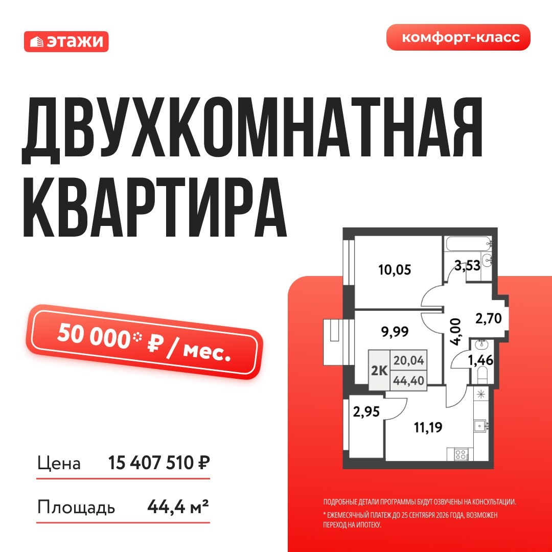▶️Рассрочка с платежами 50 000 ₽ О проекте 🔴Прописка Москва 🔴15 мин. м. Коммунарка 🔴Несколько видов отделок 🔴Турецкий подрядчик ANTTEQ 🔴Два камерных квартала с монолитно-кирпичными домами Условия: ПВ 20%, далее 50 000 ₽/мес Остаток не позднее 25 сентября 2026 года Не применимо к 1-к.кв. Расчет: Стоимость: 15 407 510 ₽ ПВ: 3 081 502 ₽ Ежемесячный платеж: 50 000 ₽ до 25 сентября 2026 года, возможен переход на ипотеку.