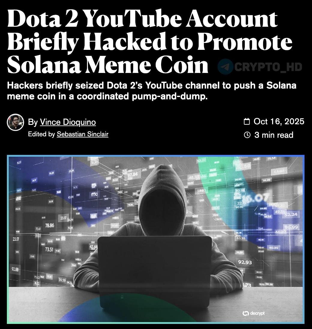 ❌ Официальные YouTube-каналы Dota 2 и PGL были взломаны – пиарили СКАМ-токен (original)