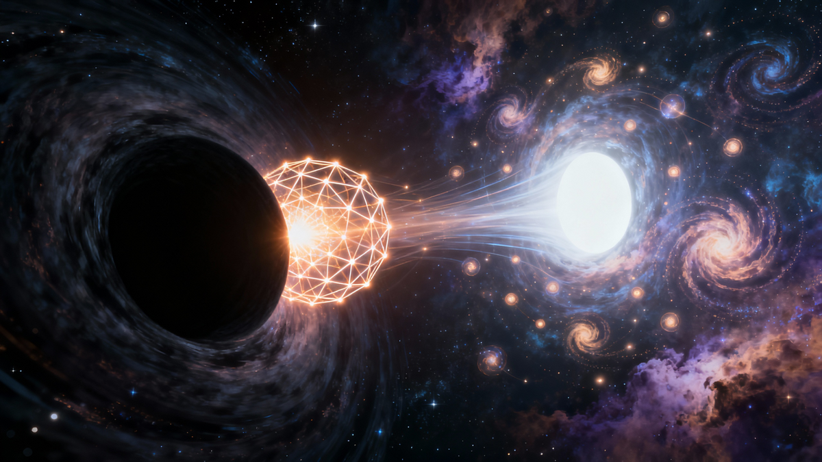 Наиболее радикальное применение концепции белых дыр связано с происхождением нашей собственной Вселенной. Стандартная космологическая модель рассказывает нам, что все, что мы видим — галактики, звезды, планеты и даже ткань пространства и времени — возникло из чрезвычайно горячего, плотного и быстро расширяющегося состояния, известного как Большой взрыв.