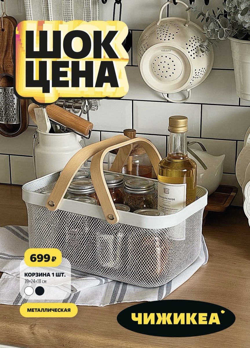 Начну с простого и практичного предмета интерьера — металлической корзины с деревянными ручками. Привезут за 699-