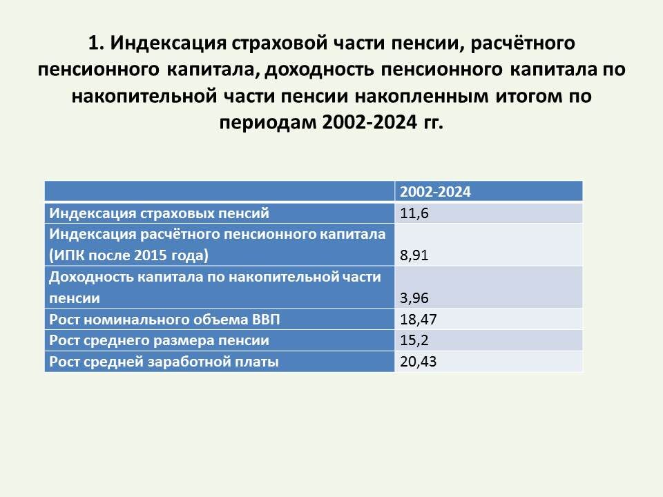 В Государственной Думе рассматривался закон об увеличении ожидаемого периода выплаты накопительной пенсии на 2026 год до 270 месяцев. Это тот случай, когда условия разных пенсионных реформ перемешались, в итоге наслоение одной реформы на другую приводит к ущемлению пенсионных прав отдельных категорий пенсионеров. Подобное увеличение ожидаемого периода выплаты накопительной пенсии уменьшит ее ежемесячный размер по сравнению с первоначально утвержденным сроком выплаты накопительных и страховых пенсий - 19 лет, 228 месяцев. Напоминаю, что реформа перехода к частично накопительной пенсионной системе реализовывалась с 2002 по 2014 год. Граждан 1967 года рождения в обязательном порядке заставили отчислять от 4 до 6% на накопительную пенсию вместо отчислений на страховую (старшие возрастные когорты отчисляли от 2 до 3% в течении 3 лет). За период до очередной пенсионной реформы (до 2015 года) индексация расчетного пенсионного капитала составила 4,29 раз, а доходность по накопительному капи