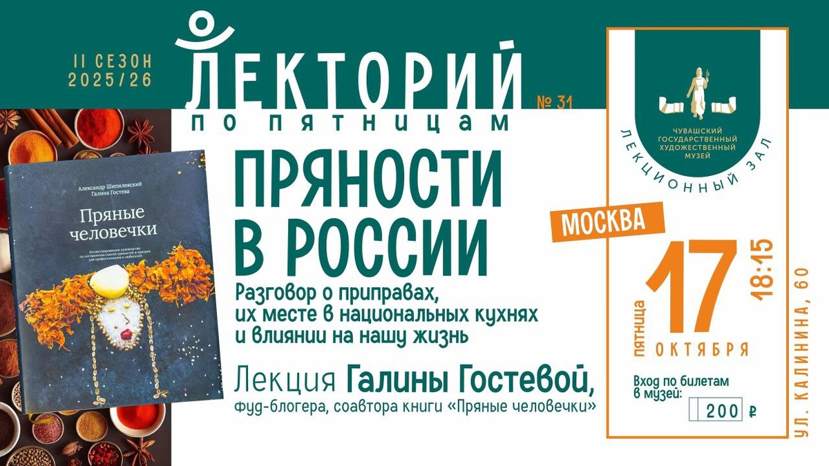 В эту пятницу, 17 октября, у нас снова гастроли. К нам в Лекторий по пятницам приедет Галина Гостева, фуд-блогер и публицист, и расскажет нам про пряности.