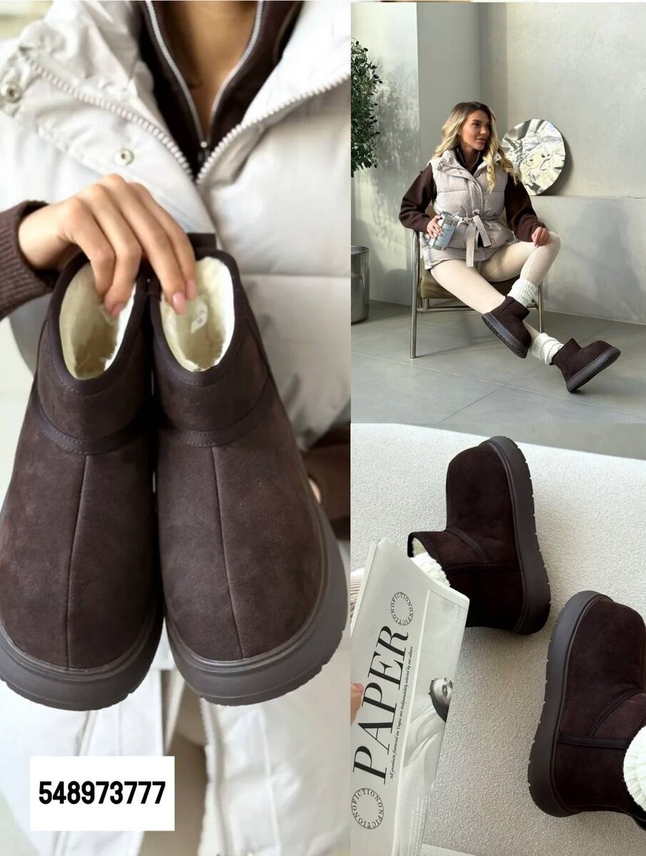 Что важно. Низкое голенище, плотный ворс внутри, мягкая посадка по подъёму. Глубокий коричневый цвет практичен: меньше заметны следы реагентов и мокрый снег.