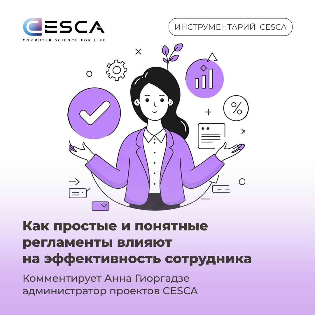 Когда мы говорим о регламентах, чаще всего представляется увесистый документ с множеством пунктов, подпунктов и отсылок на другие инструкции. Такие документы полностью прочитывают в лучшем случае 5% сотрудников, не говоря уже о том, чтобы им следовать. В итоге руководители не получают результат, задачи выполняются хаотично, процессы затягиваются, а эффективность стремится к нулю. Сотрудники перегружены и не понимают, что делать — ведь не открывать же эту инструкцию размером с увесистую библиотечную книгу, в которой нет ни капли захватывающего сюжета! Особенно когда горят сроки. В команде CESCA решили изменить этот подход. Наша цель — оптимизировать процессы, сделать их прозрачными и облегчить жизнь сотрудников. Поэтому мы создали простые, понятные и наглядные регламенты. Мы собрали обратную связь, проанализировали старые документы, оставили в них только суть и заменили канцеляризмы на простую речь. Добавили ассоциативные картинки, скриншоты с пояснениями и итоговые тесты для проверк