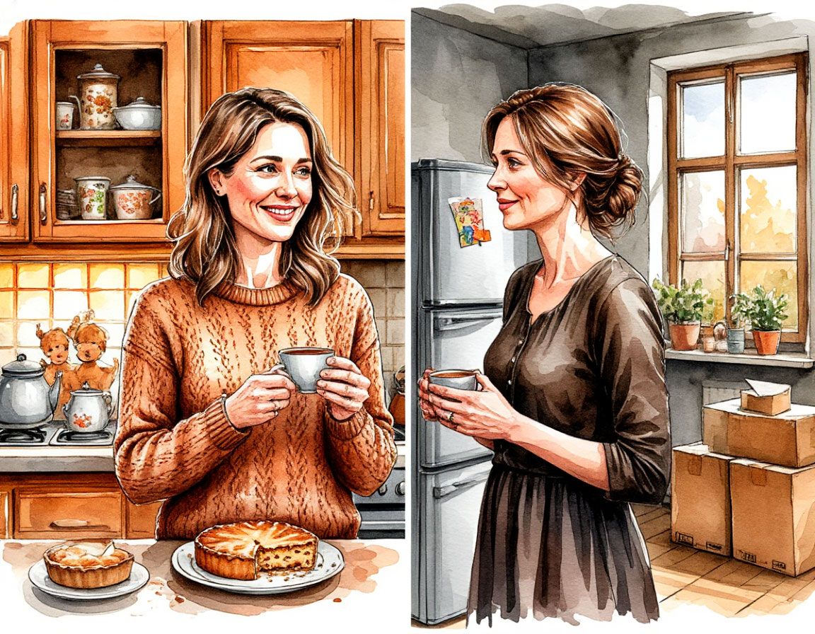 Мария смотрела на Алису — на то, как та с жадностью впитывает эту обычную кухонную суету, детский смех, запах пирога — и вдруг увидела свою жизнь её глазами. Всё, что казалось серым и скучным, вдруг засветилось другим светом. Уют вместо рутины. Тепло вместо обязанностей. То, что есть и останется — вместо того, что уйдёт и рассыплется.