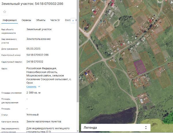 Название: Земельный участок с кадастровым номером 54:18:070502:286, местоположение: Российская Федерация, Новосибирская область, Мошковский