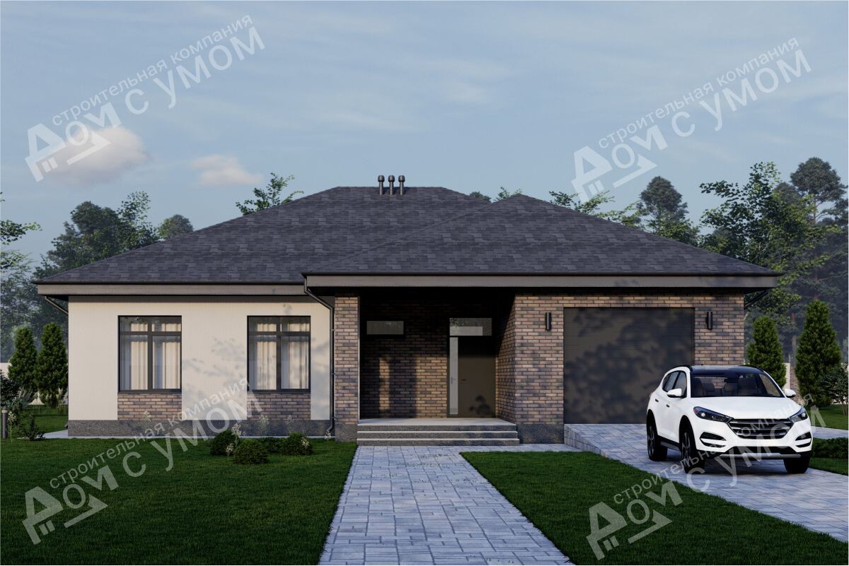 Проект соответствует популярному сейчас тренду на одноэтажные дома: все помещения находятся в одном уровне, что очень удобно. Архитектура дома довольно простая, современная и лаконичная. Правильная форма позволяет создать уютную и закрытую от посторонних взглядов террасу. А все самые значимые помещения: кухня-гостиная, терраса и мастер-спальня выходят окнами в сад. Общая площадь - 187,4 кв.м