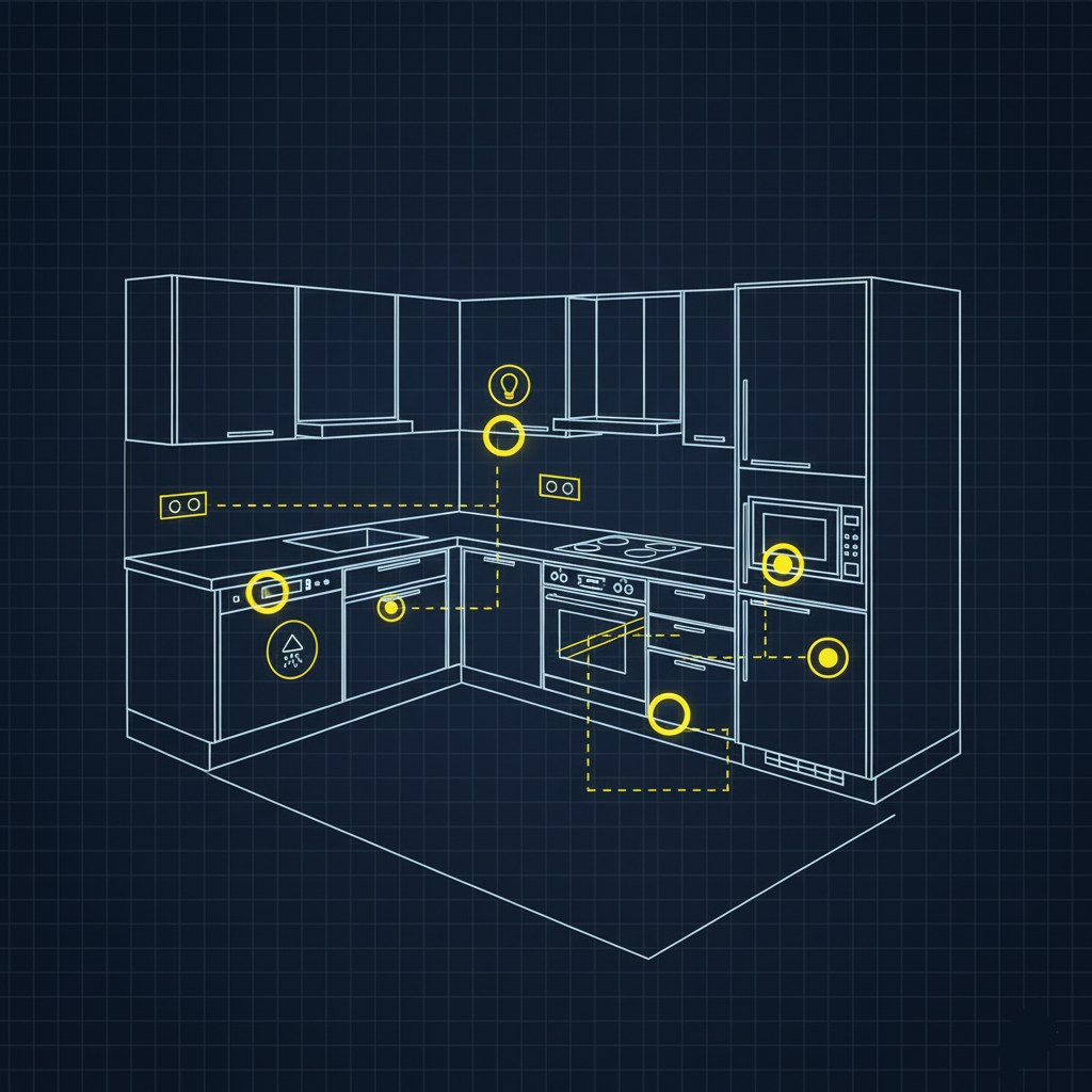 Привет всем, кто в ремонте! Сегодня поговорим о теме, где ошибка стоит дороже всего — об электрике на кухне. Забытая розетка для посудомойки или удлинитель, тянущийся через всю столешницу к миксеру — это боль на долгие годы. Чтобы этого избежать, нужно мыслить системно. Вся кухонная электрика делится на три уровня. Давайте пройдемся по каждому. Уровень 1: Нижний (скрытый, для крупной техники)