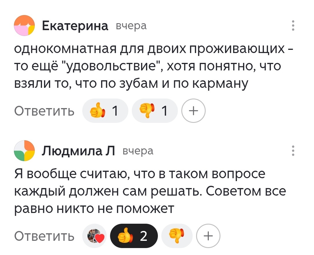 Если бы мы продали квартиру в хрущёвке, то могли бы купить трёхкомнатную квартиру в городе. Но я предпочла перевезти маму🙏 из деревяшки в двухкомнатную квартиру в хрущёвке, а мы взяли ещё кредит и купили двухкомнатную квартиру в городе.