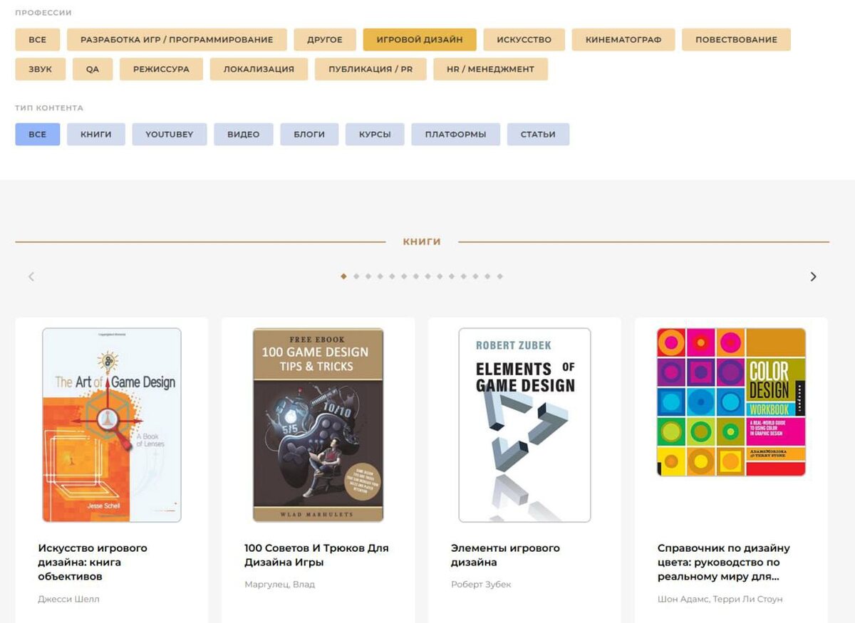 Внутри справочника собраны более 350 обучающих материалов, аккуратно структурированных по ключевым направлениям: разработка и программирование, геймдизайн, нарратив, тестирование, звук, арт, локализация и многое другое. Все эти ресурсы использовались опытными разработчиками из топовых студий, что делает их особенно ценными.