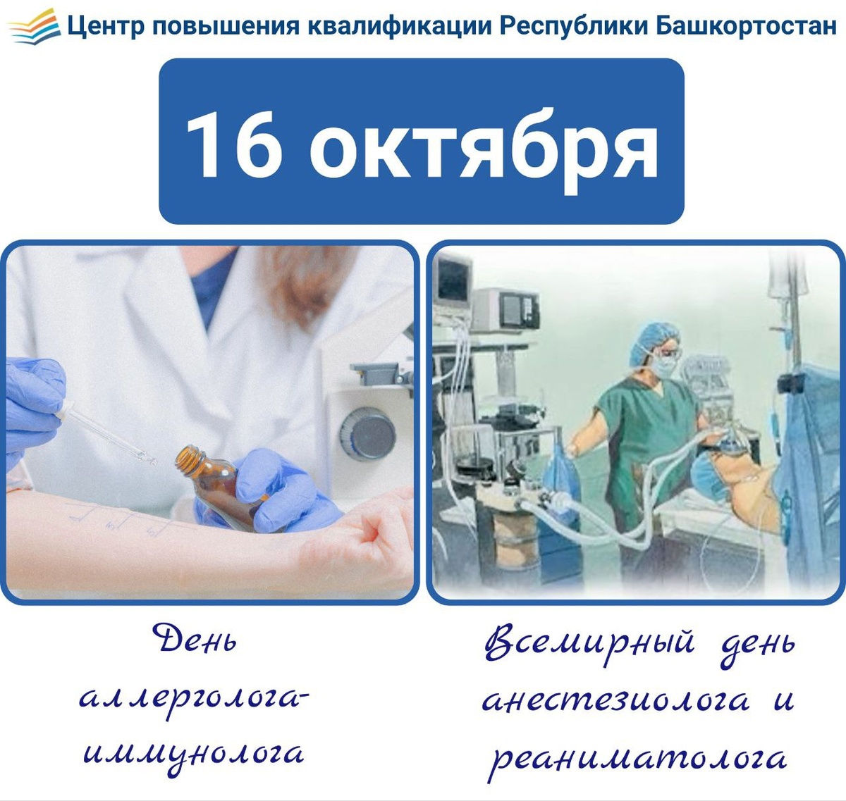 ✨16 октября мы отмечаем сразу два важных профессиональных праздника: Всемирный день анестезиолога и реаниматолога, а также День аллерголога-иммунолога.