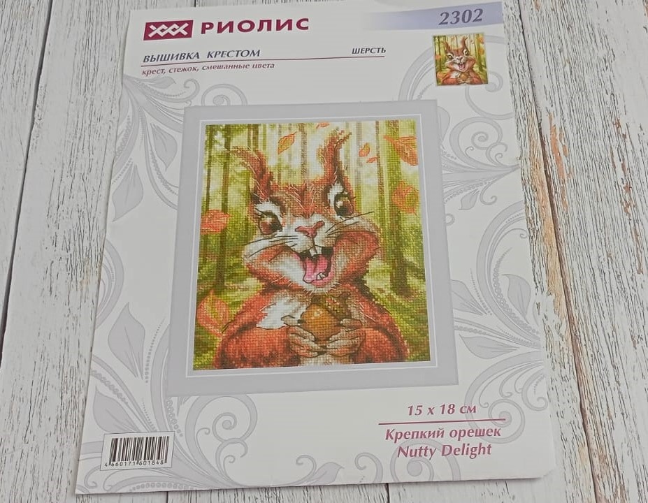 Здравствуйте! Сегодня забрала с пункта выдачи набор от Риолис "Крепкий орешек". Да-да, ту самую чумачечую белку, о которой я Вам уже немного рассказывала. Когда я вышла из пункта выдачи с этим набором в руках, то выглядела примерно, как эта белка... И, как обещала, покажу Вам обзор. Перед Вами превью: Напомню характеристики данного набора: Нитки: шерсть