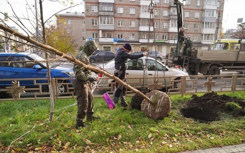 Деревья высадили на участке Ленина от Карла Маркса до Красноармейской, сообщает пресс-служба Администрации Ижевска.