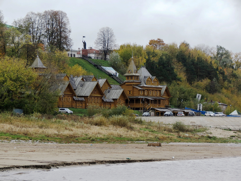 Совсем уж вдали виднеются шлюзы Нижегородской ГЭС в благородном сталинском стиле: