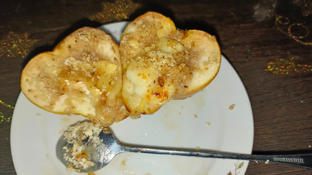 Десерт из груши, запечённой с мёдом и сыром/это вкусно и быстро.