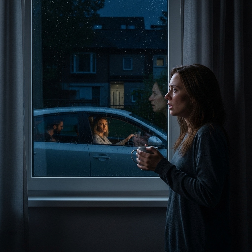 И увидела: возле подъезда — его машина. Фары выключены. Двигатель — тёплый. Я замерла. Сердце ударило в грудь. Он сидел внутри. Не один.